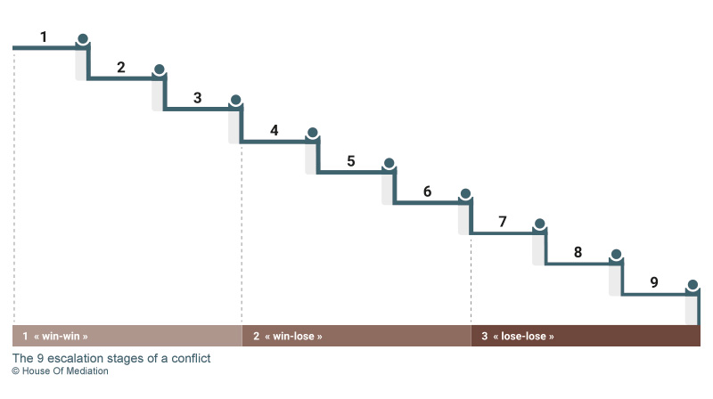 The nine escalation stages of a conflict according to Mr. Friedrich Glasl¹